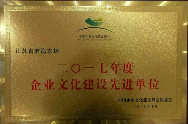 淮海農場多年以來實施的“文化陶治工程”,助推了農場文化氛圍的進一步拓展,豐富了職工居民的精神文化生活。農場2015年獲得全國“模范職工之家”牌匾,2016年獲得國家“職工書屋”榮譽,2017年又獲得中國2017年底企業(yè)文化建設“先進單位”稱號。