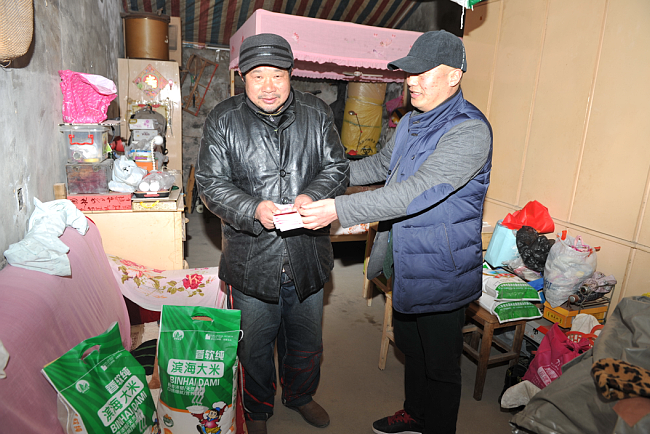 原來,陸同林是農(nóng)場轉崗職工,通過自謀職業(yè),從事個體經(jīng)營業(yè)務。有著濃厚軍墾情結的他,在兩天前特地找到臧成龍,想通過他了解,并在年前資助兩戶貧困戶的想法。