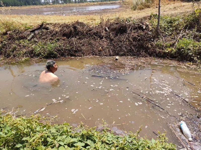 自十二隊收割以來,王國來要在田頭,查收割損失率,看秸稈留茬高度;要在場頭,查登場小麥水分,看小麥籽粒飽滿度,協調糧食堆放、調運;要在路口,指揮拖拉機旋田作業(yè);要心系秧苗……6月8日,十二隊中閘嚴重缺水,經查是排水渠堵塞。排水渠里腐爛的雜草漾著白沫,蚊蟲嗡嗡亂撞,王國來毫不猶豫跳進了水中。一遍、二遍,他一次次潛入水中,經過1個多小時腳挑手掏,疏通堵塞,恢復排水順暢。