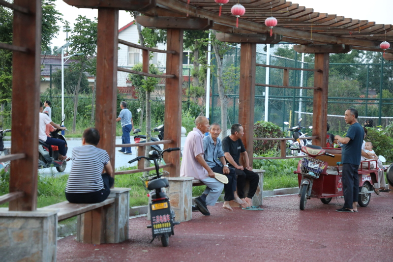 廊架下的“家常理短”。棗紅的廊架,既有著中國傳統(tǒng)因素,又有著古典的雅致,廊架下的長板凳不僅成為鍛煉后人們休息的好地方,也成為大家聊在的好去處。伴著微涼的晚風(fēng),三五個人坐在廊架下,嘮嘮嗑,拉拉家常,說著今年的水稻長的怎么樣?你家這次撒了多少肥?我家雇了多少人在田里拔草等等,一天忙碌后的疲勞在這里得到緩解。居民新區(qū)的明大媽每天都會到廊架下坐上一個多小時,退休在家的她,每天在廊架下聽著大家?guī)淼?/span>“新聞”,不僅充實了晚年生活,也打發(fā)了退休后的充足時間,廊架下的“家常理短”已逐漸成為三河人日常生活的一種樂趣。