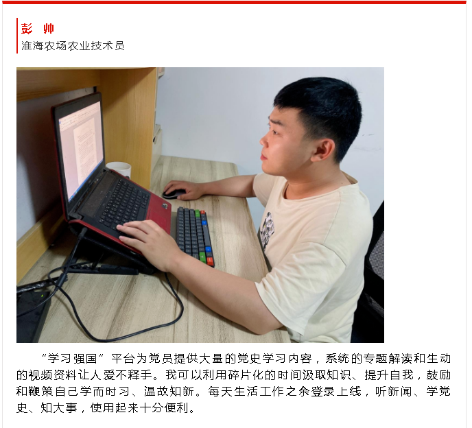 連日來,用指尖擂臺(tái)以賽促學(xué),是淮海農(nóng)場公司各支部廣大黨員干部的通行做法,大家在農(nóng)場公司黨委組織開展“喜迎二十大奮進(jìn)新征程”全場學(xué)習(xí)達(dá)人挑戰(zhàn)賽中,形成了比學(xué)趕超的濃厚氛圍,同時(shí)在線上組織黨員進(jìn)行打卡競賽活動(dòng),進(jìn)一步提高了廣大黨員同志自身的政治素養(yǎng),激發(fā)了大家的學(xué)習(xí)熱情,也在學(xué)思踐悟中,更加深化了對習(xí)近平新時(shí)代中國特色社會(huì)主義思想的理解。