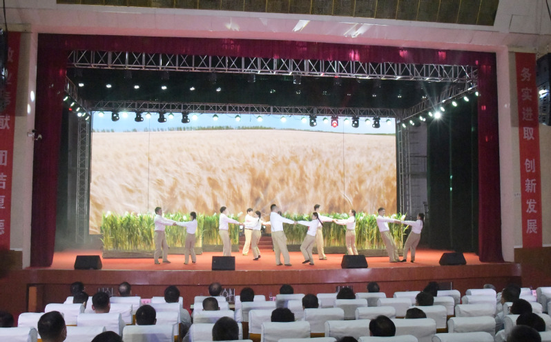 今年的9月23日將迎來第五個中國農(nóng)民豐收節(jié)。在節(jié)日即將來臨之際,淮海農(nóng)場26位演職人員,來到臨海農(nóng)場公司黨群文化中心,用生動活潑的情景劇故事和唯美的舞臺表演藝術,將102師部隊整建制改編成農(nóng)建四師,來到五岸六垛黃海邊,開荒建場的歷史和農(nóng)建四師在集體轉(zhuǎn)業(yè)后,從淮海農(nóng)場這片熱土上,走向江蘇農(nóng)墾、輻射全國、創(chuàng)造美好生活的開拓歷程,生動地呈現(xiàn)在全國農(nóng)墾人的面前。