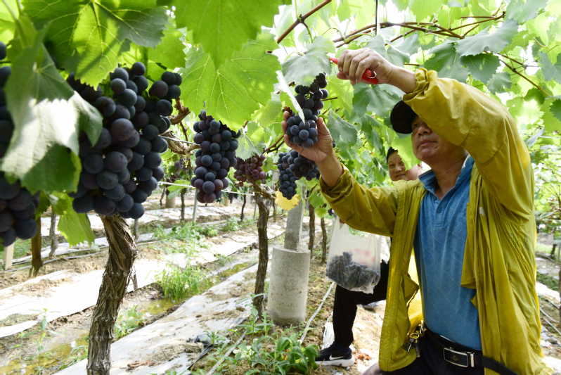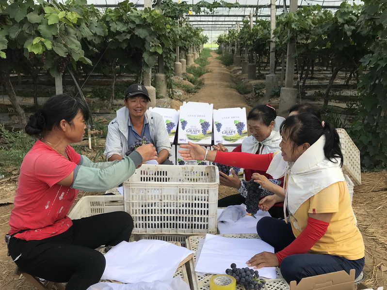據(jù)了解,園內(nèi)種植品種“夏黑”和“陽(yáng)光玫瑰”等葡萄品種,畝產(chǎn)量達(dá)4000上下。特別是統(tǒng)一施用農(nóng)家肥、無(wú)公害防蟲(chóng)防病、反光膜覆蓋、科學(xué)滴灌、疏果等措施,輔助于智能化的通風(fēng)調(diào)溫、噴淋調(diào)水和調(diào)節(jié)光照設(shè)施的開(kāi)展,合理調(diào)節(jié)土壤水分,降低田間溫、濕度,也減輕各類病蟲(chóng)害的侵襲,讓葡萄按規(guī)定設(shè)計(jì)的要求進(jìn)行掛果,確保種出安全、優(yōu)質(zhì)的葡萄提供給消費(fèi)者。