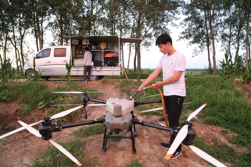眼下正是水稻產(chǎn)量形成的關(guān)鍵時(shí)期,也是病蟲害高發(fā)時(shí)期。連日來,崗埠分公司組織農(nóng)業(yè)科、生產(chǎn)區(qū)農(nóng)技人員和大隊(duì)管理員,著眼紋枯病、稻曲病、稻縱卷葉螟、稻飛虱等高發(fā)病蟲害,深入田間展開排查統(tǒng)計(jì),分類施策,科學(xué)開展肥水管理和綠色防控,抓好4.5萬畝水稻的穗期管理工作。“無人機(jī)夜間對(duì)水稻進(jìn)行病蟲害綜合防治作業(yè),避開白天高溫作業(yè)風(fēng)險(xiǎn),大大提升作業(yè)效率,一臺(tái)無人機(jī)每小時(shí)可噴灑150畝,有力加速防治進(jìn)程。”崗埠分公司農(nóng)業(yè)中心負(fù)責(zé)人表示,無人機(jī)飛防不僅作業(yè)效率快,防治效果好,減少農(nóng)藥使用量,降低農(nóng)業(yè)生產(chǎn)成本,且能大大降低勞動(dòng)強(qiáng)度,一舉多得。當(dāng)前正是穗期水稻病蟲害綜合防治關(guān)鍵節(jié)點(diǎn),分公司共組織無人機(jī)40余臺(tái),采取夜間操作,確保在規(guī)定防治時(shí)間內(nèi)完成防治任務(wù),為秋糧豐收打好基礎(chǔ)。