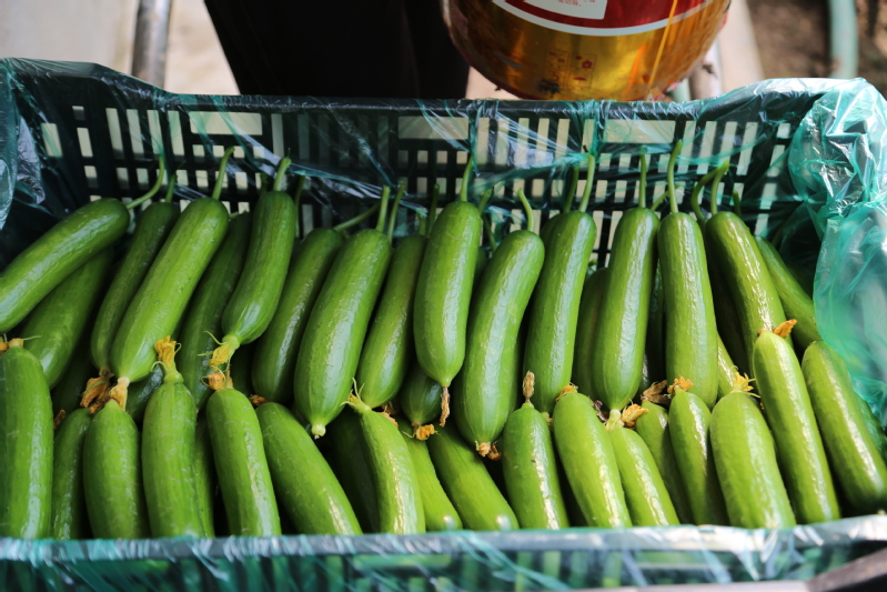 生產(chǎn)中,技術(shù)人員根據(jù)棚溫、濕度等變化規(guī)律合理進行調(diào)節(jié),為黃瓜生長提供適宜的環(huán)境,提高黃瓜的品質(zhì),經(jīng)過科學管理,目前已經(jīng)成功上市銷售。由于目前市場上水果黃瓜供應較少,加之崗埠水果黃瓜品質(zhì)優(yōu)良,收到了保真超市和市區(qū)一些水果連鎖店的熱捧,訂單紛至沓來。“現(xiàn)在水果黃瓜剛上市,產(chǎn)量每天僅4、5百斤,根本不夠搶的,今天都摘了第二遍了?!贝奘科揭贿吤β抵贿呎f。