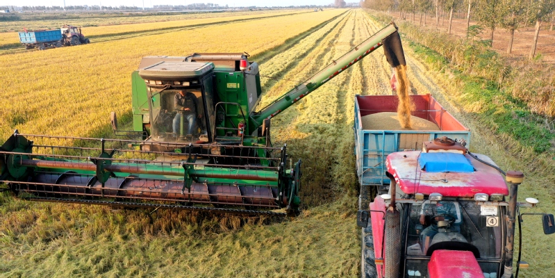 10月24日,江蘇農(nóng)墾黃海農(nóng)場(chǎng)11萬(wàn)畝水稻迎來(lái)豐收?,F(xiàn)場(chǎng)收割機(jī)的隆隆轟鳴,糧食運(yùn)輸車(chē)輛來(lái)回穿梭,確保水稻應(yīng)收盡收、機(jī)收減損、顆粒歸倉(cāng)。