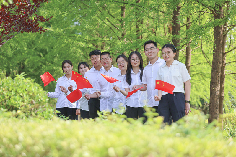 9月27日,在江蘇省鹽城市射陽縣,江蘇農(nóng)墾新洋農(nóng)場(chǎng)組織青年員工開展“我與國(guó)旗合影”活動(dòng)。張偉生 攝