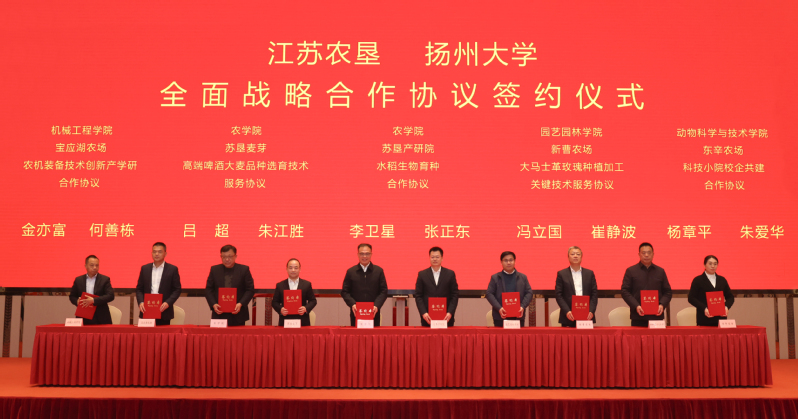 集團公司總經濟師、相關部門負責人,相關農場、蘇墾農發(fā)等單位負責人,揚州大學相關學院及部門負責人、專家教授等參加簽約儀式。