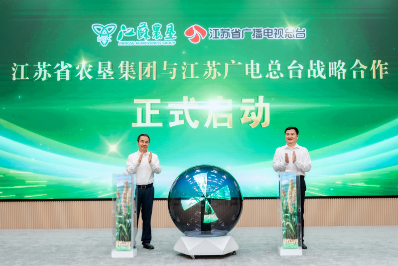 9月30日上午,江蘇省農(nóng)墾集團(tuán)有限公司與江蘇省廣播電視總臺(tái)在南京舉行戰(zhàn)略合作簽約儀式,并共同發(fā)布“蘇墾優(yōu)品”品牌。江蘇省農(nóng)墾集團(tuán)黨委書(shū)記、董事長(zhǎng)吳本輝,黨委副書(shū)記朱浩,黨委委員、副總經(jīng)理鄧國(guó)新;江蘇廣電總臺(tái)黨委書(shū)記、臺(tái)長(zhǎng)、集團(tuán)董事長(zhǎng)葛萊,黨委副書(shū)記、副臺(tái)長(zhǎng)、集團(tuán)總經(jīng)理陸峰,黨委委員、副臺(tái)長(zhǎng)、集團(tuán)副總經(jīng)理季建南等領(lǐng)導(dǎo)出席活動(dòng)。葛萊在致辭中表示,江蘇廣電總臺(tái)與江蘇省農(nóng)墾集團(tuán)兩大省屬國(guó)有企業(yè)強(qiáng)強(qiáng)聯(lián)手,是貫徹總書(shū)記重大要求的自覺(jué)行動(dòng),也是落實(shí)省委省政府決策部署、賦能江蘇現(xiàn)代農(nóng)業(yè)發(fā)展的生動(dòng)實(shí)踐。雙方將聯(lián)合宣傳江蘇農(nóng)業(yè)發(fā)展成就,合力講好江蘇農(nóng)墾品牌故事,攜手探索“視聽(tīng)+農(nóng)業(yè)”產(chǎn)業(yè)模式,為江蘇農(nóng)業(yè)現(xiàn)代化注入新的強(qiáng)勁動(dòng)能。吳本輝在致辭中表示江蘇農(nóng)墾歷經(jīng)73年發(fā)展,已成為以現(xiàn)代農(nóng)業(yè)為核心,一二三產(chǎn)業(yè)融合發(fā)展的省屬大型國(guó)有企業(yè)?!疤K墾優(yōu)品”作為今年集團(tuán)重點(diǎn)打造的平臺(tái)品牌,堅(jiān)持綠色、安全、高品質(zhì)的標(biāo)準(zhǔn),致力于滿足消費(fèi)者對(duì)健康餐桌和美好生活的需求。期待雙方緊密協(xié)同、資源互補(bǔ),共同打造全國(guó)領(lǐng)先的農(nóng)業(yè)品牌建設(shè)典范,助力江蘇品牌強(qiáng)省戰(zhàn)略實(shí)施,為推動(dòng)江蘇農(nóng)業(yè)現(xiàn)代化走在全國(guó)前列貢獻(xiàn)品牌力量。發(fā)布會(huì)上,朱浩詳細(xì)介紹了“蘇