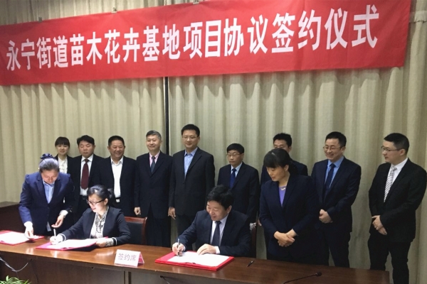 4月17日,集團黨委委員、蘇墾農(nóng)發(fā)股份公司總裁、蘇墾園藝董事長蘇志富一行前往南京市浦口區(qū)參加蘇墾園藝永寧街道苗木花卉基地項目簽約儀式并致辭。  簽約儀式上,蘇志富對永寧街道各級領(lǐng)導(dǎo)給予基地項目的關(guān)