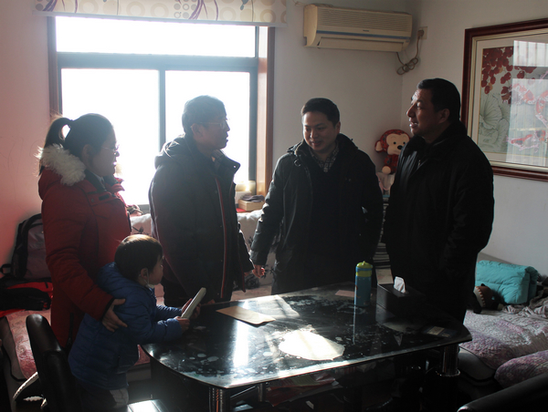 2月9日,集團(tuán)公司黨委書(shū)記、董事長(zhǎng)魏紅軍,工會(huì)主席佟曉廷一行到江心沙農(nóng)場(chǎng)看望慰問(wèn)困難職工,向他們送上集團(tuán)公司黨委的親切關(guān)懷和新年問(wèn)候?! ∥簳?shū)記一行首先來(lái)到海沙居委會(huì)困難職工蔡新娣家中