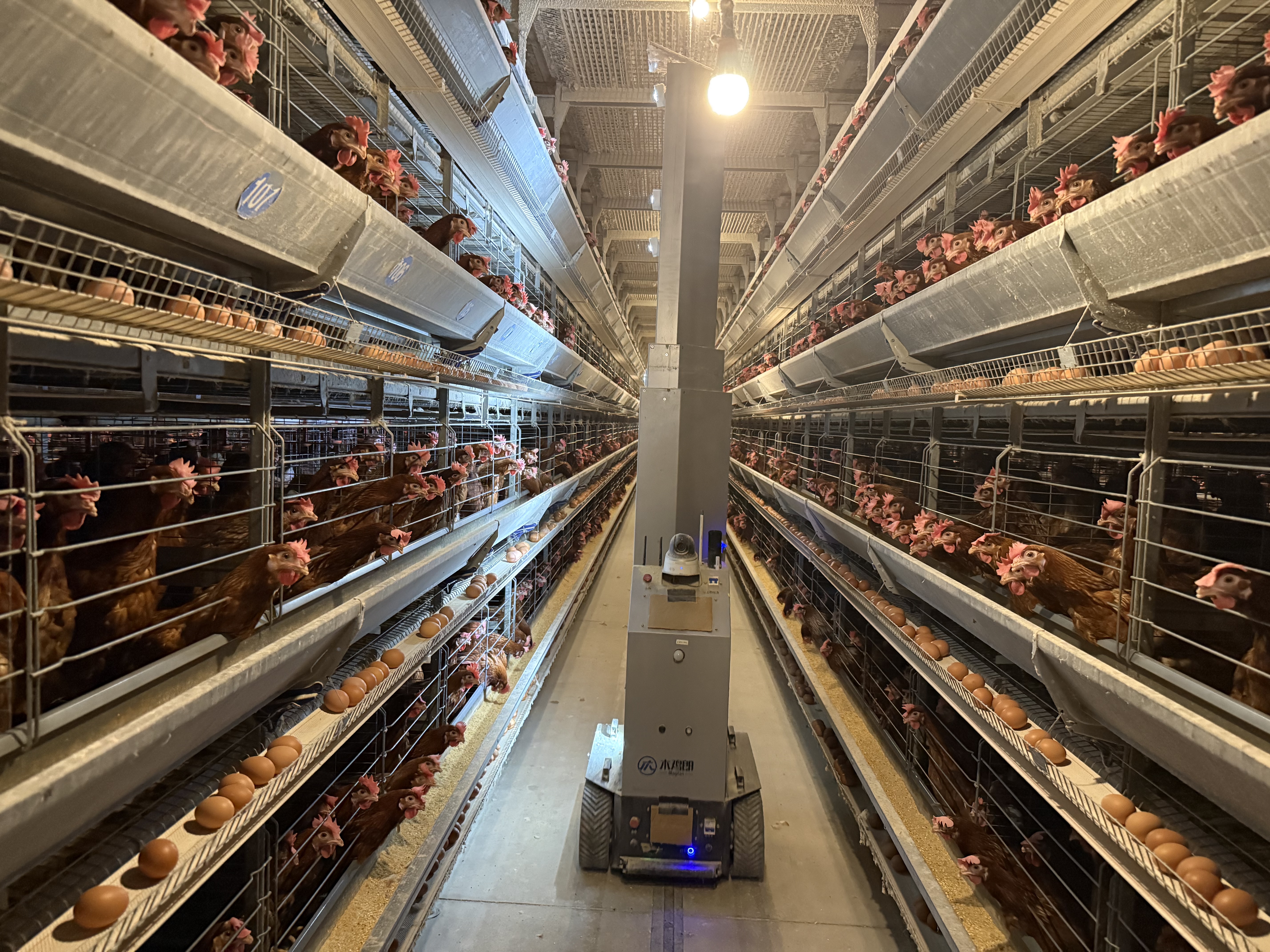 天還未亮,新曹農(nóng)場蛋雞場里已響起窸窸窣窣的腳步聲。27歲的張宇推開雞舍大門,8.5萬只蛋雞齊刷刷仰起脖頸,羽毛光滑油亮。智能巡檢機(jī)器人即刻啟動,攝像傳感器掃過雞籠矩陣,將采集的溫濕度、采食飲水、環(huán)境質(zhì)量、雞群狀態(tài)等數(shù)據(jù)實(shí)時(shí)集成到數(shù)字化中央大屏上。對講機(jī)里傳來大學(xué)生孫敏清亮的嗓音:“三號料線卡頓了!”當(dāng)張宇趕過去時(shí),她已麻利地攀上了2米高的輸料管,精準(zhǔn)地將螺絲刀插入傳動軸卡槽?!叭ツ赀@時(shí)候,我連扳手型號都分不清呢?!彼呎f邊拍掉了馬尾辮上沾著的飼料碎屑?!暗谝淮芜M(jìn)雞舍,我連公雞母雞都分不清?!钡半u養(yǎng)殖場負(fù)責(zé)人開鵬回憶起在上海海豐農(nóng)場百萬羽商品蛋雞場跟班學(xué)習(xí)的日子,“師傅半夜打著手電筒,教我們聽咳嗽辨病癥、看雞糞查健康,手指頭摸遍雞冠嗉囊,說這才是活體診斷的硬功夫?!比缃?,這群跨界青年把老師傅的“土法子”升級成“五感巡欄法”——耳朵貼著雞籠聽呼吸雜音,篩查呼吸道疾??;眼睛分辨羽毛色澤變化,判斷營養(yǎng)代謝水平;鼻翼抽動捕捉氨氣異味,評估通風(fēng)系統(tǒng)效率;指尖揉搓飼料顆粒,感知干濕平衡狀態(tài);手指觸摸龍骨弧度,監(jiān)測鈣質(zhì)吸收情況。機(jī)電工黃先武是團(tuán)隊(duì)唯一的“60后”,在肉雞場干了3年多,剛到蛋雞場時(shí),堅(jiān)持