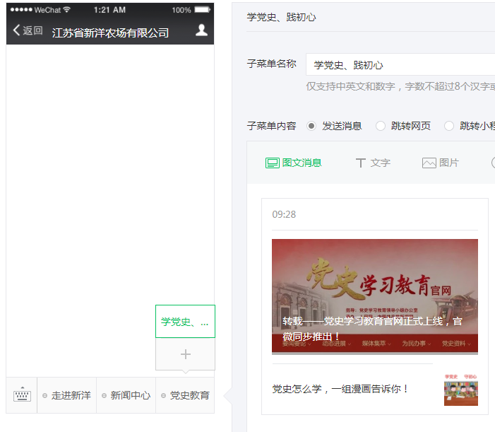 為方便干部群眾隨時(shí)隨地學(xué)習(xí)黨史知識(shí),新洋農(nóng)場(chǎng)有限公司在官方微信公眾號(hào)推出“學(xué)黨史、踐初心”專題欄目,不定期刊載黨史學(xué)習(xí)資料,為黨史學(xué)習(xí)教育開辟了一條新途徑。