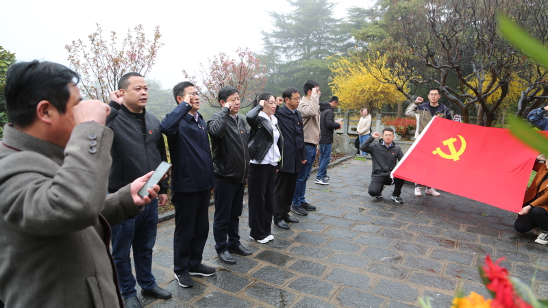 在八路軍著名抗日將領(lǐng)符竹庭墓前,大家在志愿者的介紹中了解符竹庭將軍戎馬一生、為國為民的光輝事跡。隨后,一行人莊嚴(yán)肅穆,全體默哀1分鐘,以表達(dá)對革命先烈最崇高的敬意和最深刻的懷念。支部黨員為革命英烈敬獻(xiàn)花籃,全體黨員向紀(jì)念碑三鞠躬,并面向黨旗重溫入黨誓詞。