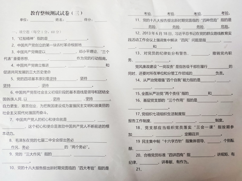 在測試前,派出所對廣大干警和聯(lián)防隊(duì)員進(jìn)行了一次黨史的集中學(xué)習(xí)和輔導(dǎo),輔導(dǎo)結(jié)束后,測試采用開卷限時(shí)的形式進(jìn)行,內(nèi)容主要包括黨史、新中國史、改革開放史、社會(huì)主義發(fā)展史等。測試形式以填空題、簡答題兩種形式。在夜??荚?/span>現(xiàn)場,大家專心致志認(rèn)真答題,遵守紀(jì)律,考試氣氛濃厚。