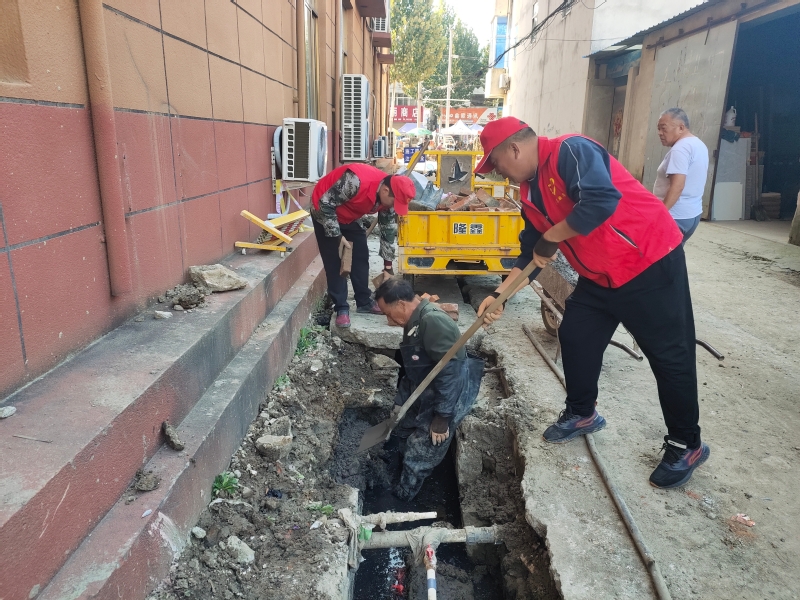 修理廠小區(qū)部分路段路面及下水道設(shè)施損壞,下水道內(nèi)堆積淤泥、石塊、生活垃圾等,汛期容易積澇,經(jīng)過前期社區(qū)居委會(huì)意見反饋和公司領(lǐng)導(dǎo)指示,水廠組織黨員志愿者服務(wù)隊(duì)開展清掏下水道和修復(fù)工作。