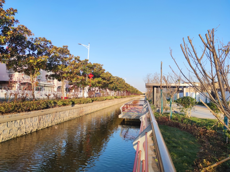 “沒想到農(nóng)場(chǎng)也建起了健身步道,而且步道兩側(cè)還栽種了許多綠化苗木和花草,還配置了許多景觀小品、休息坐椅、親水平臺(tái),生活在農(nóng)場(chǎng)真是太幸福了。”居住在農(nóng)場(chǎng)神禾路別墅區(qū)的張老漢望著河對(duì)岸清新的環(huán)境感慨地說道,“沒建這個(gè)步道前,其間要么是堆積的雜物、雞鴨棚或是種植的莊稼,破敗的狀況讓人不忍直視?,F(xiàn)在好啦,新砌的圍墻將步道與居住區(qū)隔開,道路是彩色道路,兩邊還裝了別致的路燈,不同的樹木自成一體,大家茶余飯后就可以在步道上邊散步邊聊天了。”