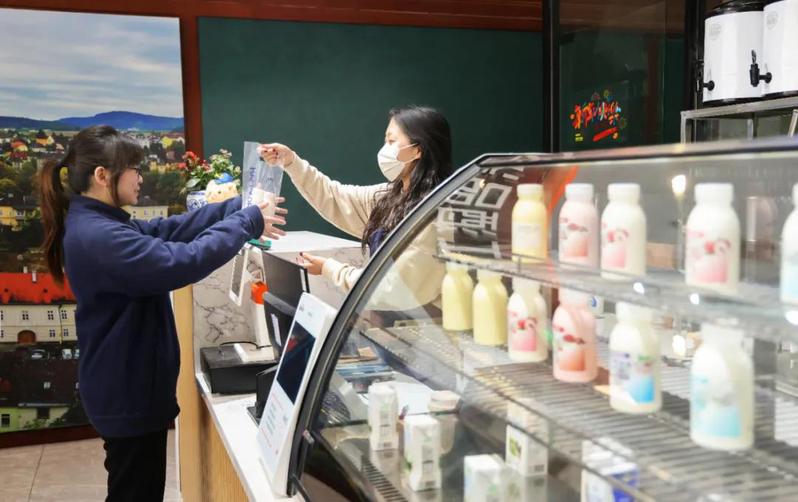 近日,位于蘇墾大廈的“簡(jiǎn)蘇鮮奶吧”內(nèi)格外熱鬧。現(xiàn)釀酸奶、冰激凌、拿鐵咖啡等產(chǎn)品一經(jīng)上架,便吸引不少顧客前來品嘗購買。