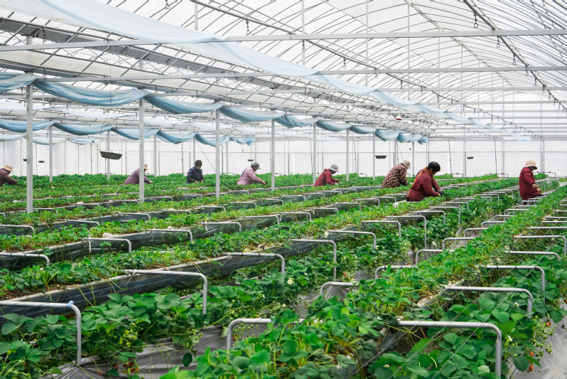 近期,三河農(nóng)場(chǎng)草莓苗繁育工作全面展開,預(yù)計(jì)今年將繁育草莓苗300萬株左右。圖為工人在繁育大棚內(nèi)整理匍匐莖。