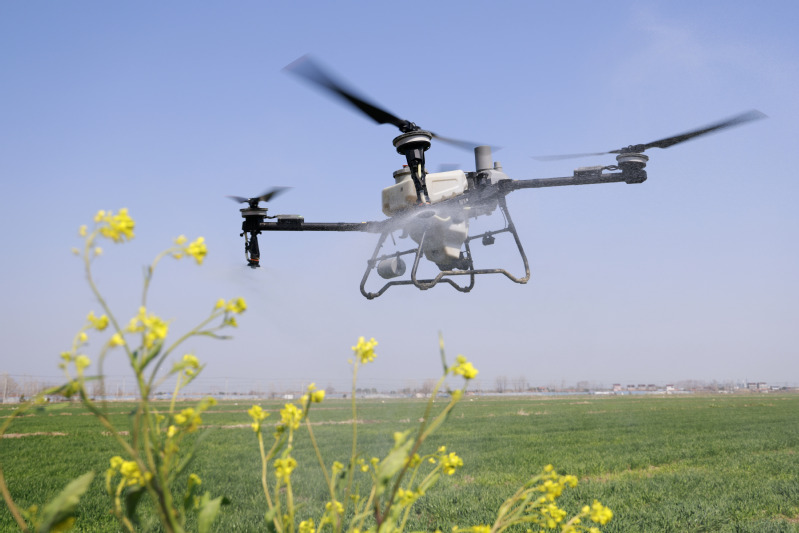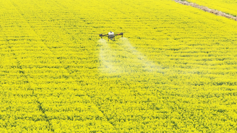 在蘇墾農(nóng)發(fā)臨海分公司25大隊(duì)油菜田上空,一架植保無人機(jī)正按照預(yù)設(shè)航線低空勻速飛行,細(xì)密的藥肥均勻地噴灑在每一株油菜上。