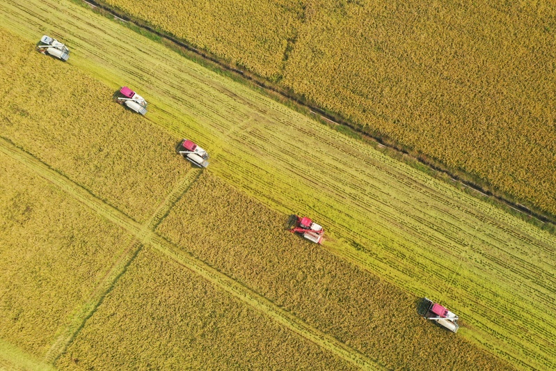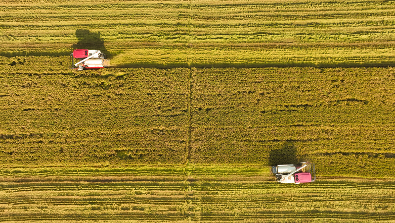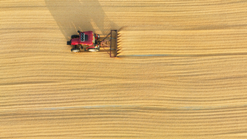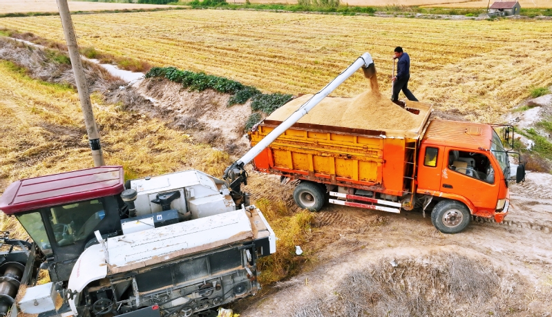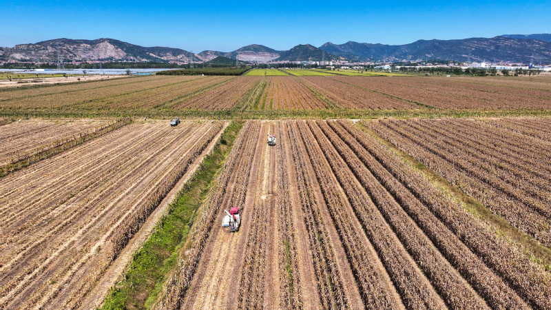 時下,正式秋收好時節(jié),在蘇墾農(nóng)發(fā)云臺分公司廣袤的田野上,豆莢搖曳如鈴,玉米金黃飽滿,伴隨著收割機(jī)的轟鳴聲,蘇墾農(nóng)發(fā)云臺分公司1.1萬畝玉米大豆復(fù)合種植“喜開鐮”,工作人員搶抓晴好天氣,及時收割、晾曬,開始了緊張而有序的收割工作。蘇墾農(nóng)發(fā)云臺分公司緊盯全年糧食生產(chǎn)目標(biāo)任務(wù),按照江蘇省農(nóng)墾集團(tuán)的“五統(tǒng)一”模式為標(biāo)準(zhǔn),通過“4+4”復(fù)合種植模式,充分發(fā)揮高位作物玉米的邊行優(yōu)勢,擴(kuò)大低位作物大豆受光空間,實(shí)現(xiàn)作物協(xié)同共生、一季雙收。為了抓好今年“三秋”工作,蘇墾農(nóng)發(fā)云臺分公司制定了各大隊(duì)組織分工、產(chǎn)量目標(biāo)、成本管控、生產(chǎn)進(jìn)度、作業(yè)質(zhì)量、田間苗情、病蟲草害控制、場頭管理與糧食入庫銷售、質(zhì)控平臺運(yùn)行、農(nóng)業(yè)面源污染治理、藥肥雙減增效、安全生產(chǎn)等12項(xiàng)“三秋”考核內(nèi)容,并多次開展技術(shù)培訓(xùn),為抓好“三秋”工作提供組織保證、考核目標(biāo)和技術(shù)標(biāo)準(zhǔn)?!翱礃幼樱衲暧质且粋€豐收年。”一大隊(duì)隊(duì)長王飛抓起一把玉米說?!伴_始作業(yè)前,我們對所有農(nóng)機(jī)具進(jìn)行了安全自查,確保收割機(jī)狀態(tài)良好,在玉米收割過程中我們嚴(yán)格按照玉米收獲作業(yè)質(zhì)量管理規(guī)程,真正實(shí)現(xiàn)玉米籽粒損失率要小于等于百分之二,籽粒破損率要小于等于百分之五的目標(biāo)任務(wù)?!?/div>