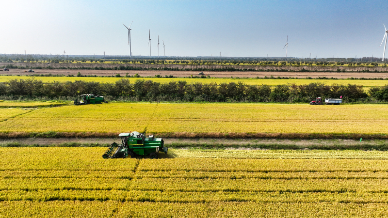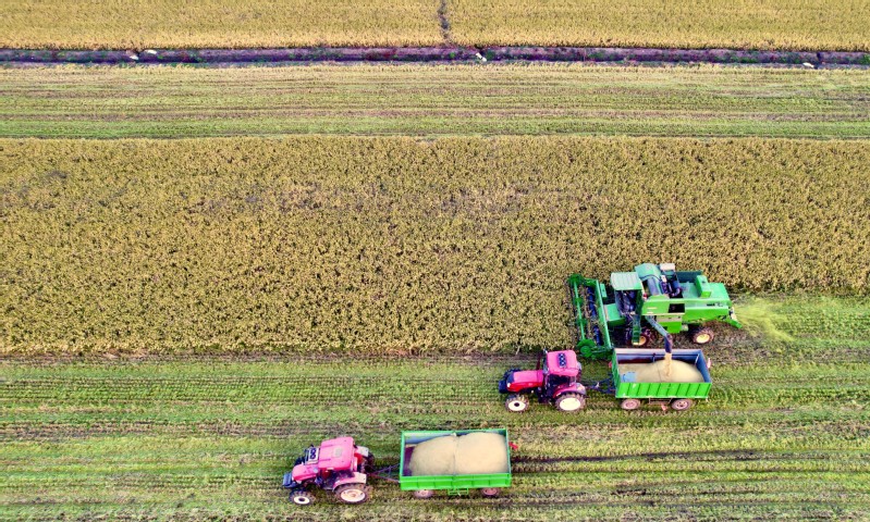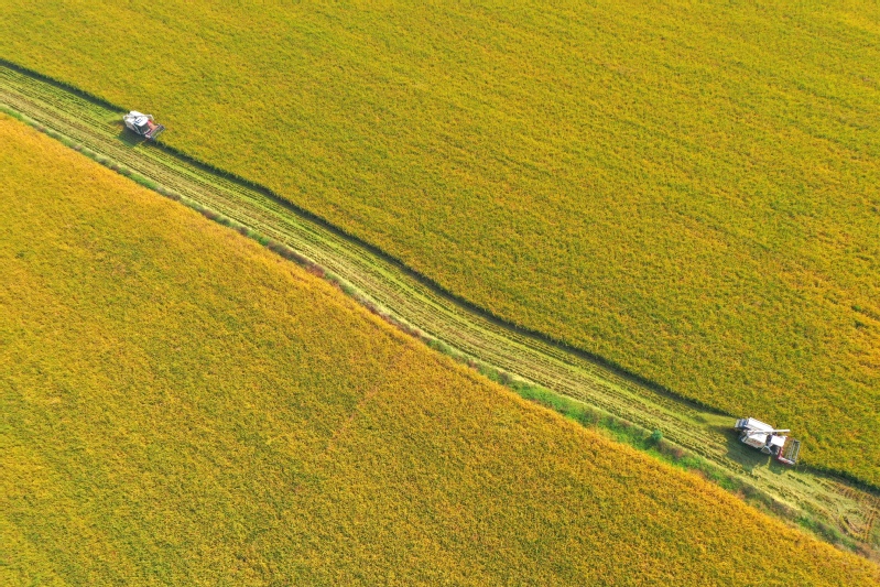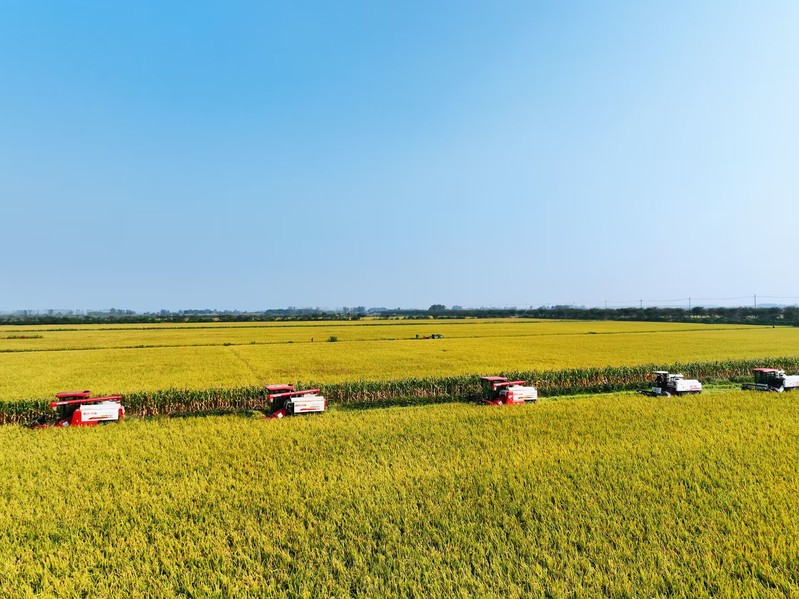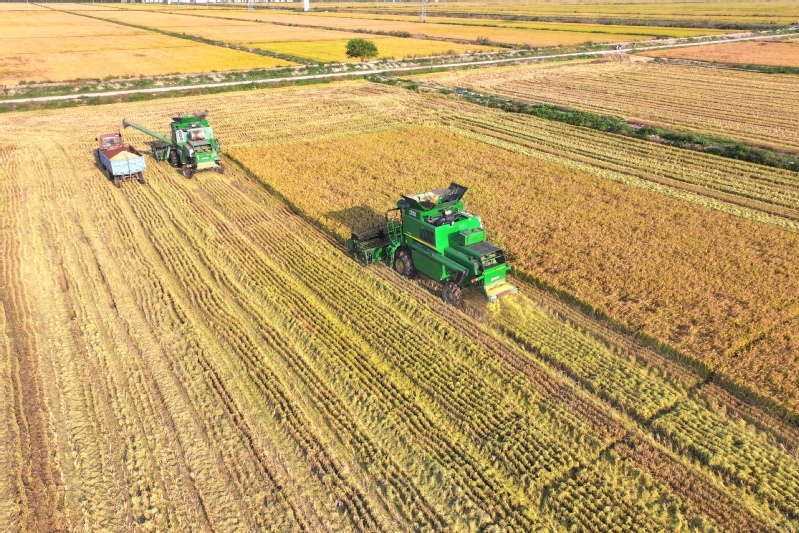 秋風(fēng)拂過(guò),稻菽飄香。眼下,正值水稻收割季節(jié),云臺(tái)大地一片金黃。10月22日,蘇墾農(nóng)發(fā)云臺(tái)分公司6000余畝水稻開(kāi)鐮收割,在田間奏響“豐收曲”。機(jī)械轟鳴,沉甸甸的稻穗被攬入“懷中”,收割、脫粒、裝車(chē),飽滿的谷粒傾瀉而下,被裝進(jìn)運(yùn)糧車(chē)?yán)?,工作人員美滋滋地看著田間的稻谷被收割殆盡,空氣中彌漫著稻谷的醇香。“今年我們的水稻長(zhǎng)勢(shì)好、產(chǎn)量高,和我們以‘繡花功夫’狠抓精細(xì)化管理是分不開(kāi)的?!痹婆_(tái)農(nóng)場(chǎng)公司黨委副書(shū)記、蘇墾農(nóng)發(fā)云臺(tái)分公司總經(jīng)理宋光鋒在收割現(xiàn)場(chǎng)會(huì)滿意地說(shuō)道。鄉(xiāng)村振興的核心是產(chǎn)業(yè)興旺,現(xiàn)代農(nóng)業(yè)是云臺(tái)產(chǎn)業(yè)興旺的中堅(jiān)力量。近年來(lái),蘇墾農(nóng)發(fā)云臺(tái)分公司堅(jiān)持標(biāo)準(zhǔn)化生產(chǎn)方式,將技術(shù)、人才、信息等資源要素“引”向農(nóng)業(yè)、“流”向企業(yè),充分發(fā)揮國(guó)有農(nóng)業(yè)企業(yè)帶頭作用,為農(nóng)業(yè)產(chǎn)業(yè)發(fā)展注入新的活力。據(jù)了解,今年“三秋”,云臺(tái)將投入小型收割機(jī)20臺(tái)用于水稻收割,并投入播種機(jī)13臺(tái),預(yù)計(jì)本月28日全部收割完畢,稻茬小麥將于31日播種結(jié)束。下一步,云臺(tái)將扎實(shí)做好秋收秋種秋管工作,牢牢守住“糧袋子”,為推進(jìn)鄉(xiāng)村振興和糧食安全貢獻(xiàn)云臺(tái)力量。