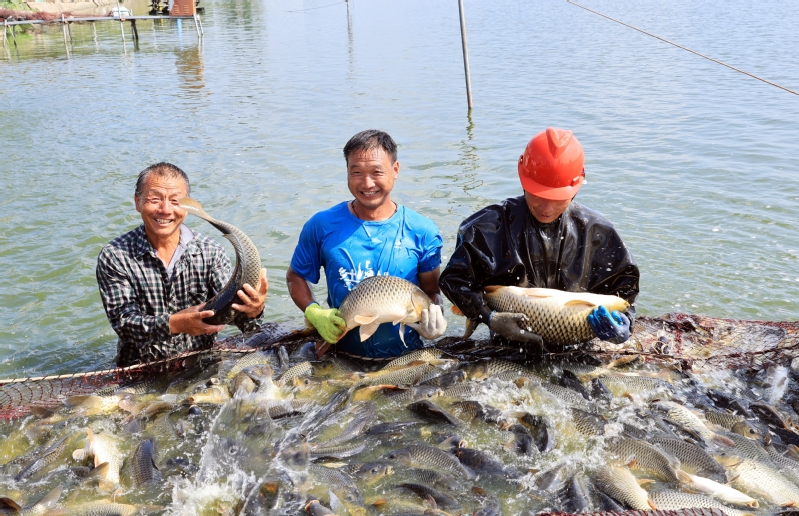 8月5日,崗埠農(nóng)場水產(chǎn)公司職工正在忙著捕魚銷售。崗埠農(nóng)場不斷優(yōu)化養(yǎng)殖結(jié)構(gòu),實(shí)行“輪捕輪放”“魚蝦混養(yǎng)”等新技術(shù)養(yǎng)殖,采取“一次放足,分批捕撈,捕大補(bǔ)小”放養(yǎng)模式,確保全年都有鮮活魚上市。該場水產(chǎn)養(yǎng)殖面積2500畝,主養(yǎng)鯉魚的池塘平均畝產(chǎn)“淮河牌”商品魚2200公斤,示范塘口最高單產(chǎn)達(dá)2600公手,最高畝效益5000元。